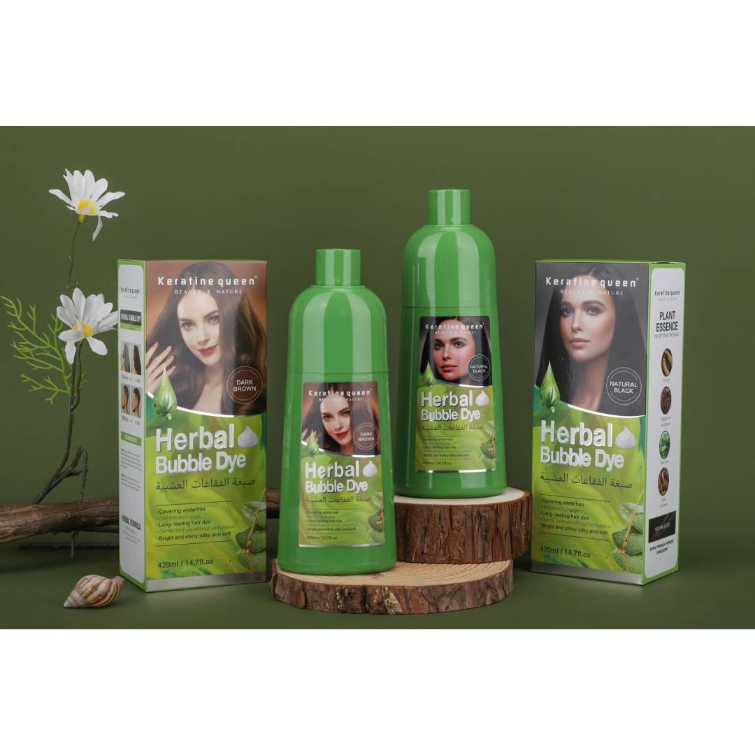 Enhance your hair with Keratin Queen Herbal Bubble Dye. This all-natural dye nourishes and strengthens hair while providing rich and long-lasting color. Choose from Dark Brown or Natural Black for a beautiful and healthy-looking mane.