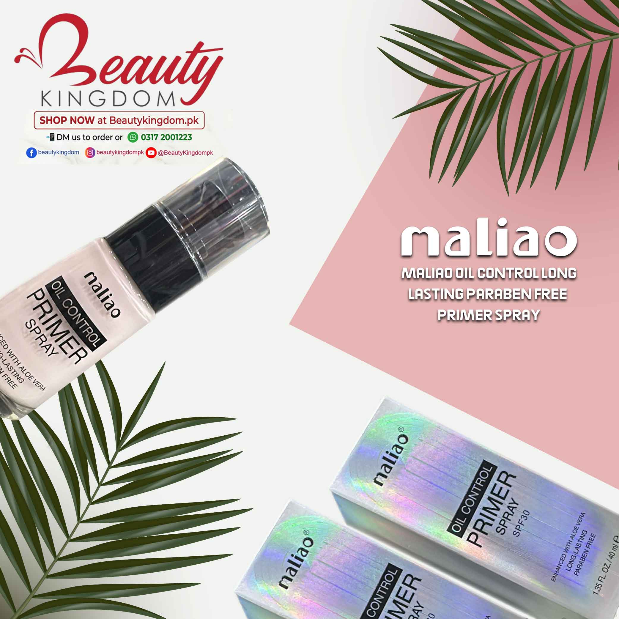 Maliao Oil Control Long Lasting Paraben Free Primer Spray is the perfect prep and set solution for a flawless makeup look. This multi-purpose spray works as both a primer and a setting mist, helping to control excess oil while extending the wear of your makeup throughout the day.